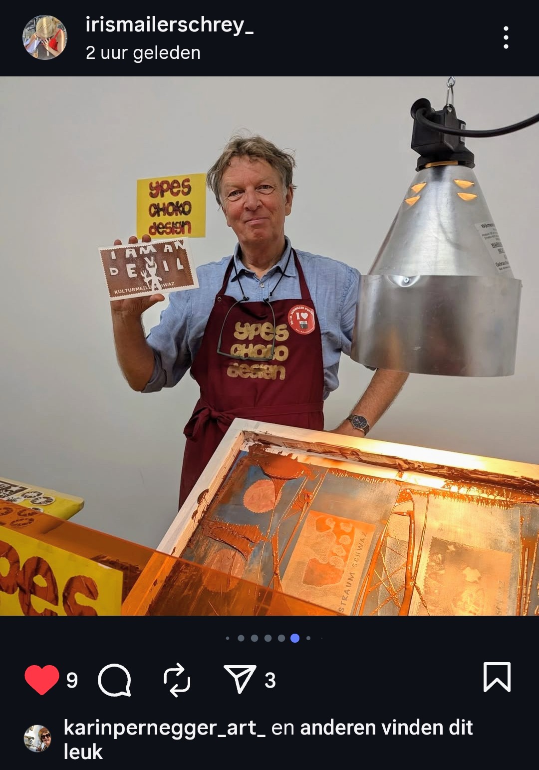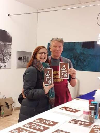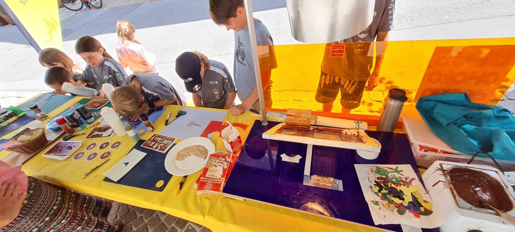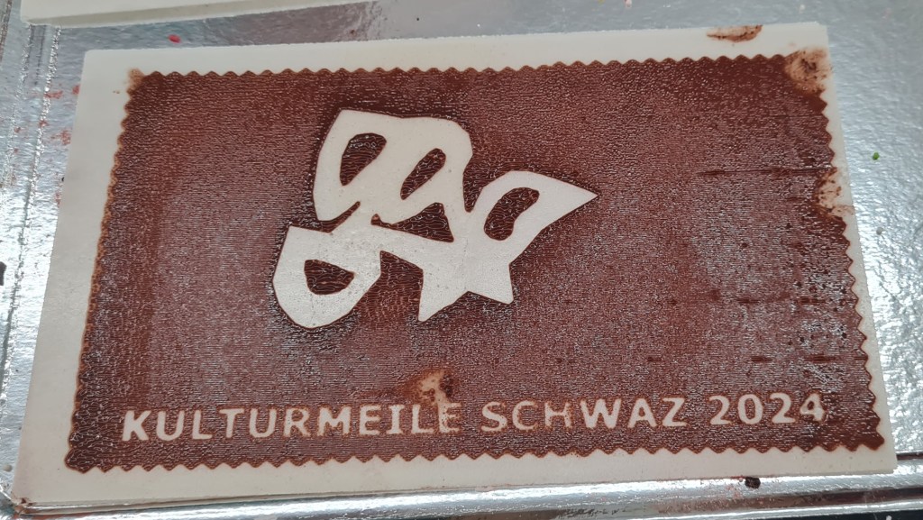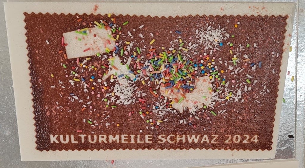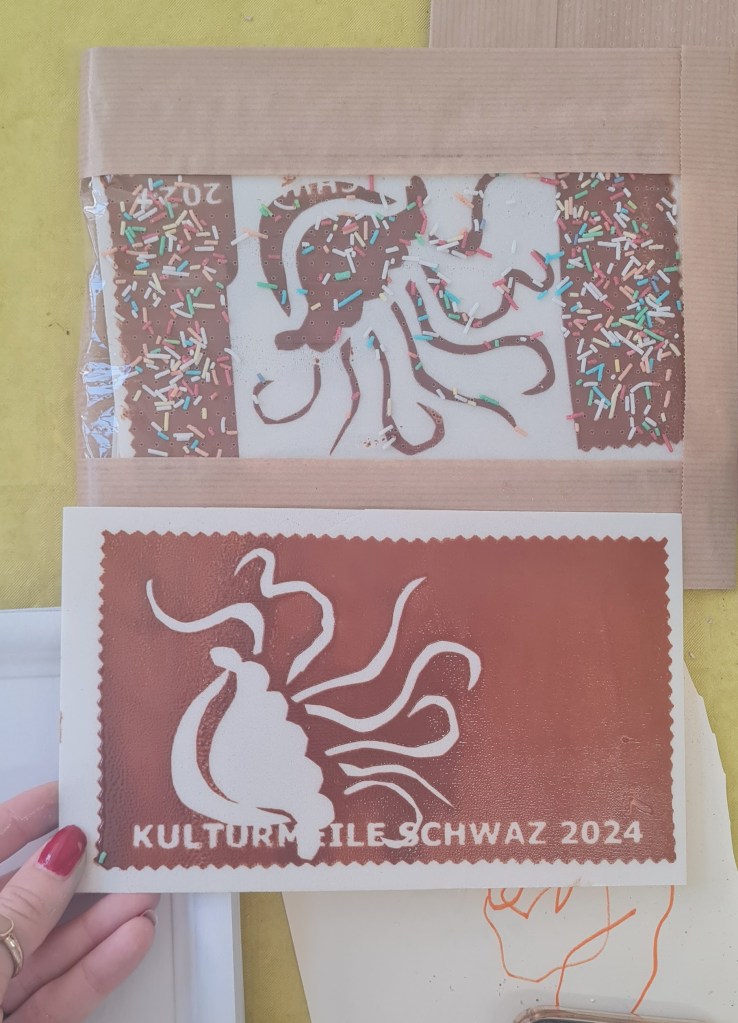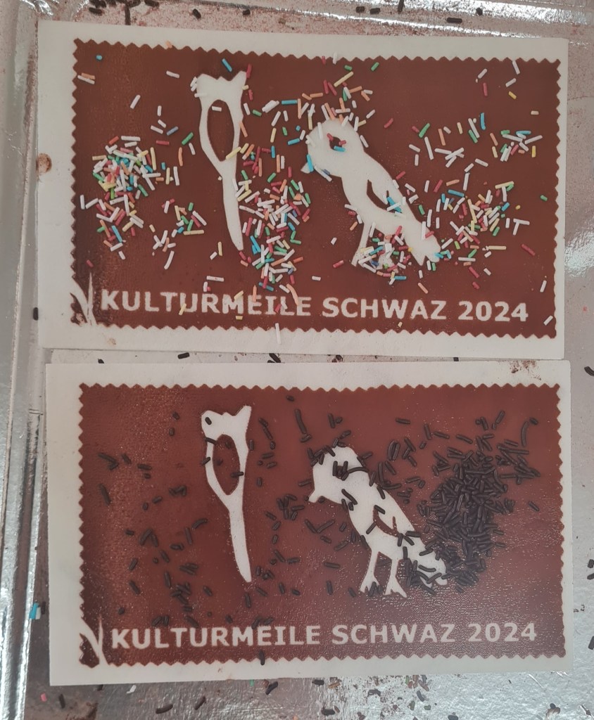 Der Künstler Ype Limburg kommt mit seiner Schokoladen-Siebdruckwerkstatt ‚Ypes Chokodesign‘ in den Kunstraum Schwaz. Dort sind alle eingeladen Motive zu gestalten und diese mit erwärmter Schokolade auf Backoblaten zu drucken.