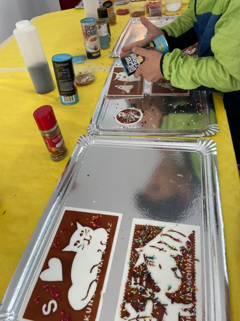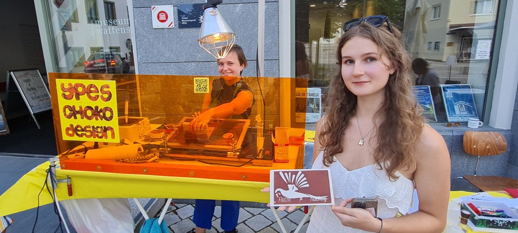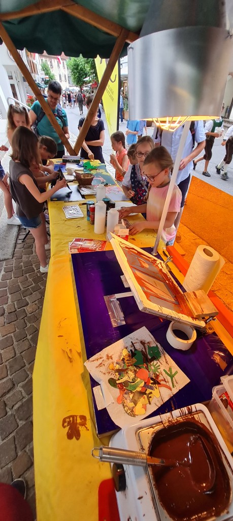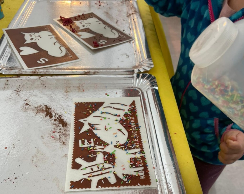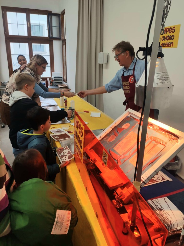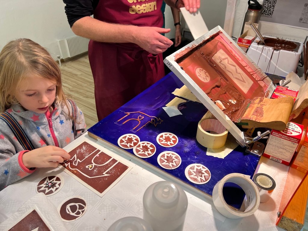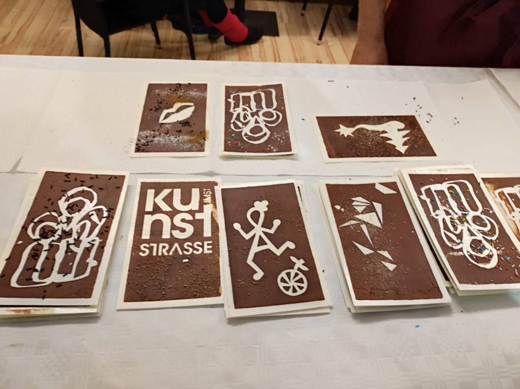 Der Künstler Ype Limburg kommt mit seiner Schokoladen-Siebdruckwerkstatt ‚Ypes Chokodesign‘ in den Kunstraum Schwaz. Dort sind alle eingeladen Motive zu gestalten und diese mit erwärmter Schokolade auf Backoblaten zu drucken.