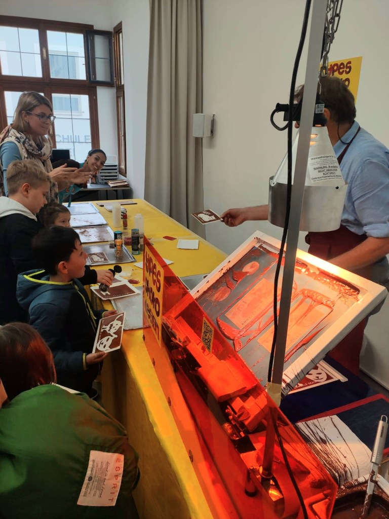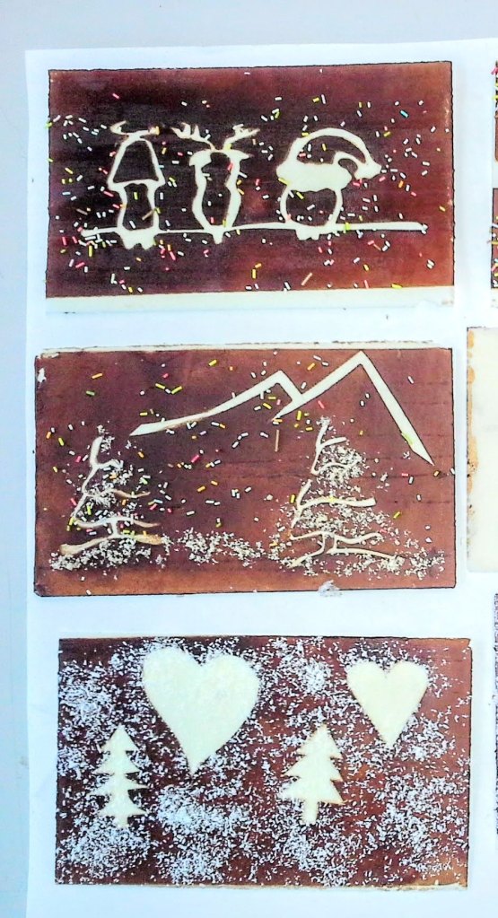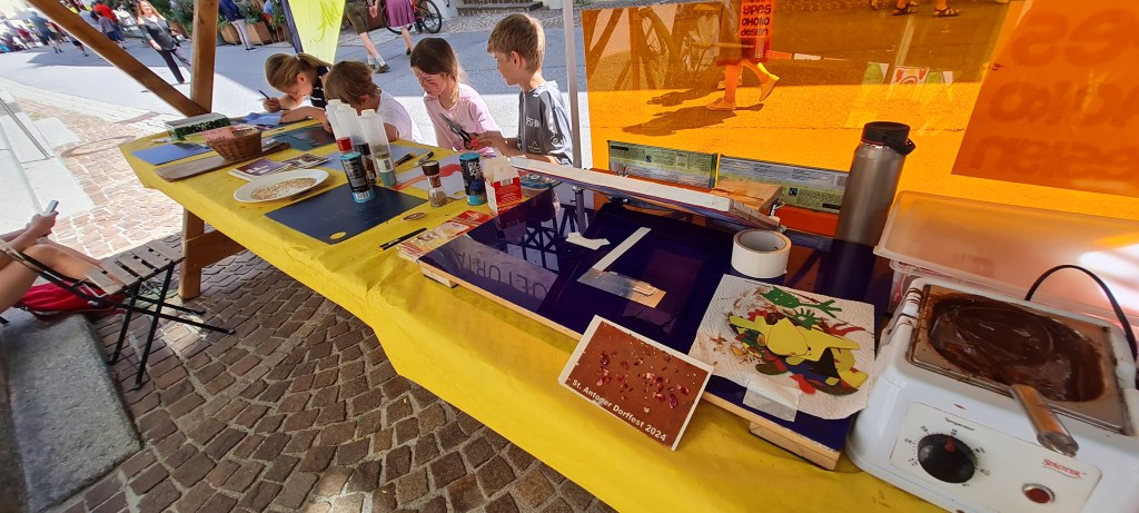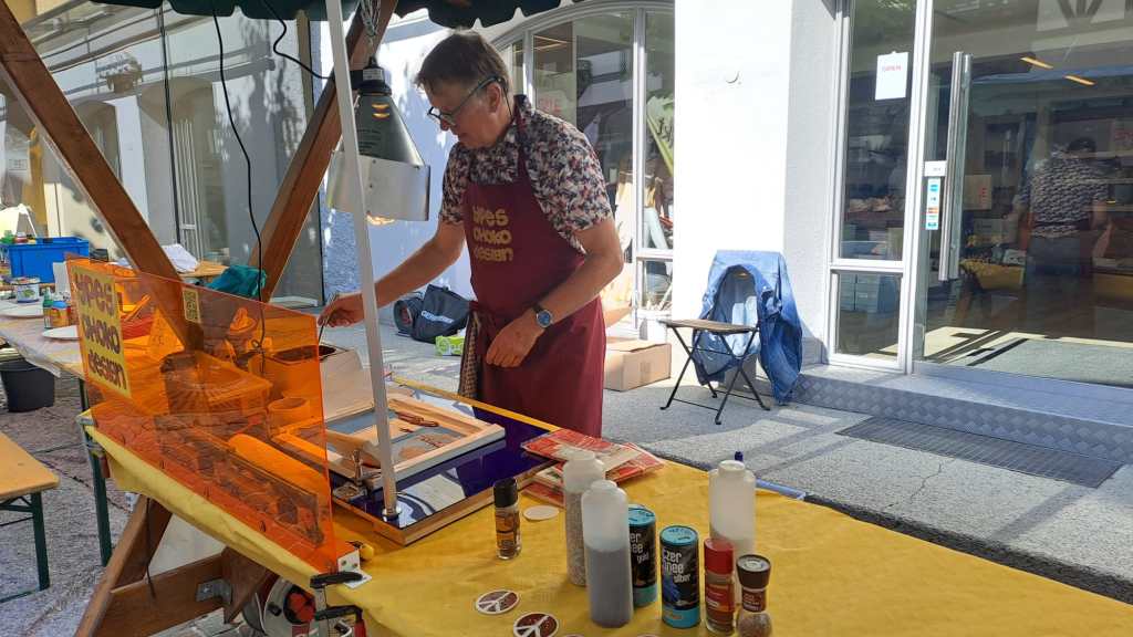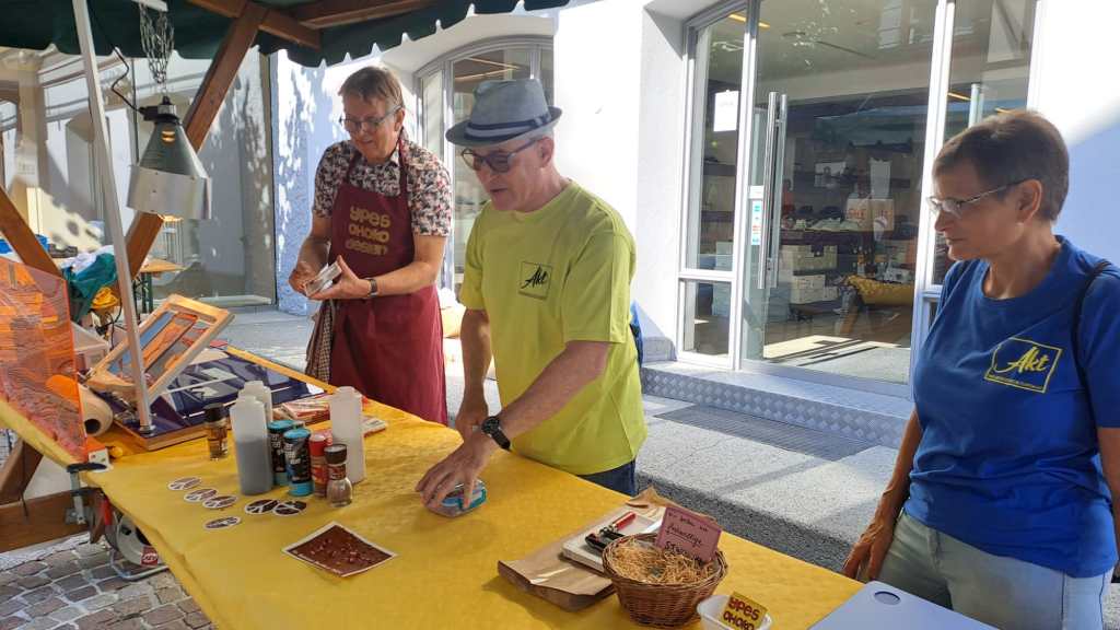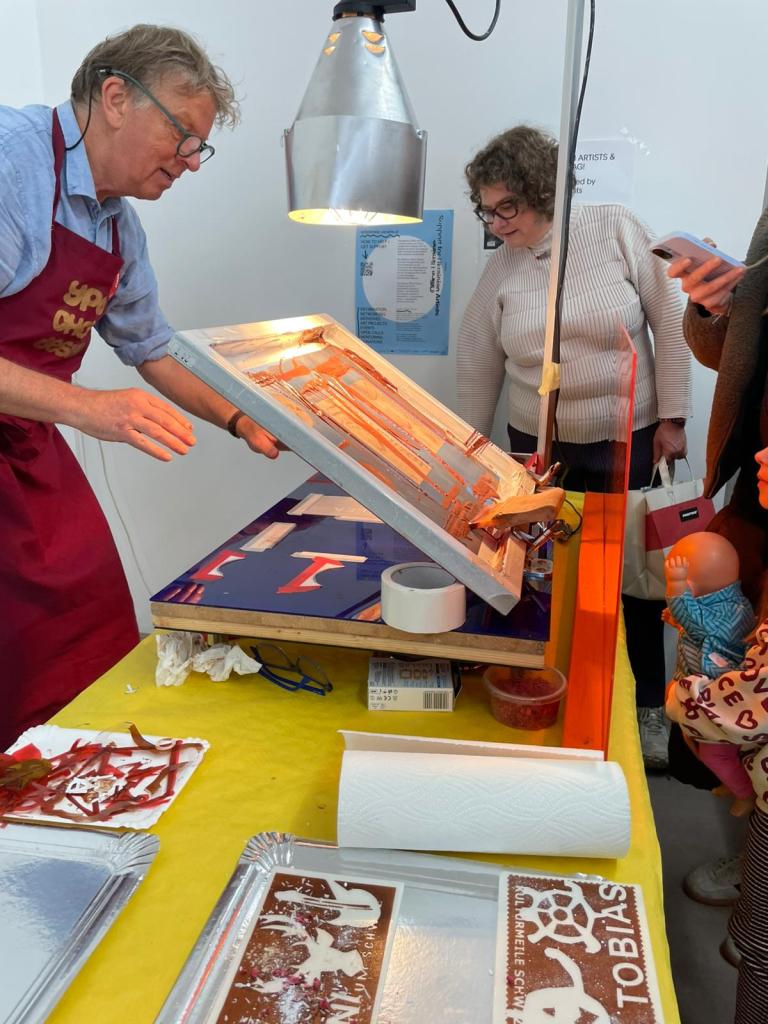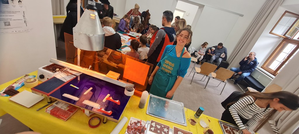 Der Künstler Ype Limburg kommt mit seiner Schokoladen-Siebdruckwerkstatt ‚Ypes Chokodesign‘ in den Kunstraum Schwaz. Dort sind alle eingeladen Motive zu gestalten und diese mit erwärmter Schokolade auf Backoblaten zu drucken.