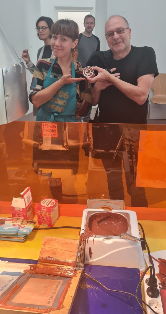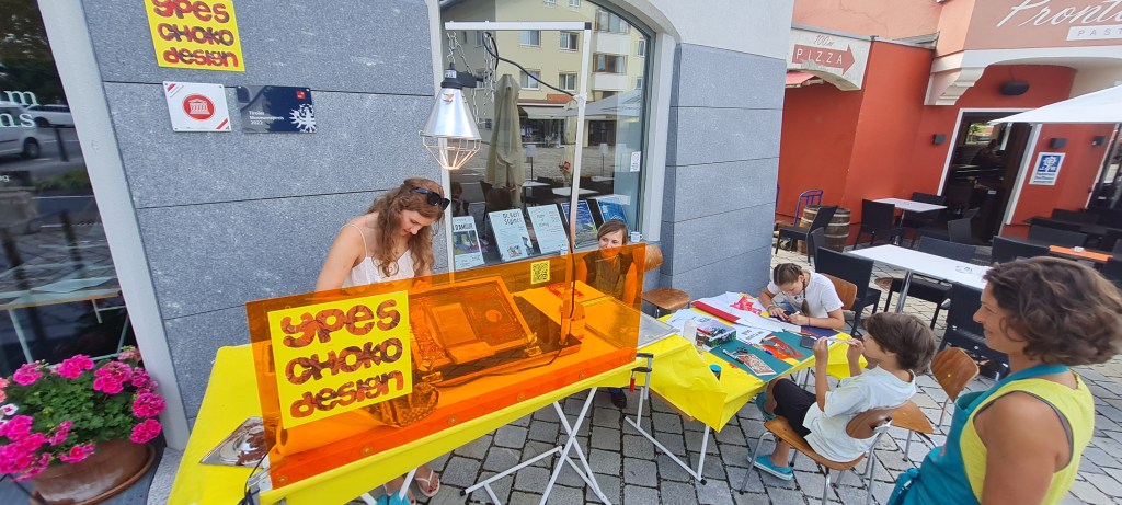 Dort sind alle eingeladen Motive zu gestalten und diese mit erwärmter Schokolade auf Backoblaten zu drucken. Die entstandenen Köstlichkeiten werden auf ypeschokodesign.blog veröffentlicht und können mit nach Hause genommen werden.