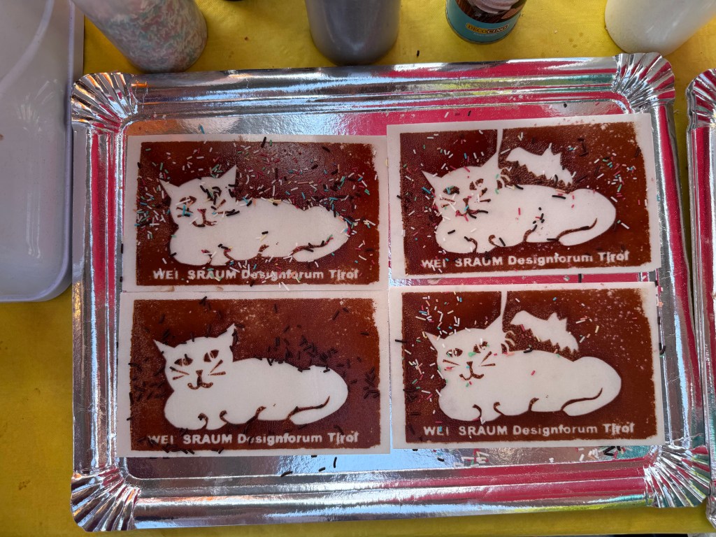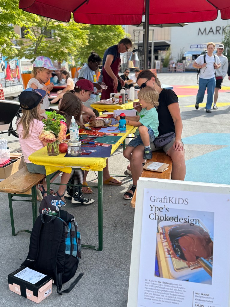 Der Künstler Ype Limburg kommt mit seiner Schokoladen-Siebdruckwerkstatt auf den Innsbrucker Marktplatz und lädt alle dazu ein, eigene Motive zu gestalten und diese mit erwärmter Schokolade auf Backoblaten zu drucken.Siebdruck ist eine spannende Drucktechnik, die sich für viele Materialien anpassen lässt. Vielen ist das Verfahren aus dem Textildruck bekannt, wo in kleinen und großen Auflagen händisch oder automatisch bedruckt wird. Im Kunstbereich wurde Siebdruck durch Pop Artists wie Andy Warhol aufgegriffen, der Kunstdrucke im Siebdruckverfahren herstellen ließ. Inspiriert von jahrelanger Erfahrung im Siebdruck hat Ype Limburg seine ganz besondere Methode entwickelt, essbare Kreationen im Schablonendruckverfahren herzustellen und mit Elementen aus der Konditorküche zu verbinden. Offen für alle die mitmachen wollen! Kostenlos und ohne Altersbeschränkung und ohne Anmeldung! https://www.weissraum.at/veranstaltungen/ype-s-chokodesign